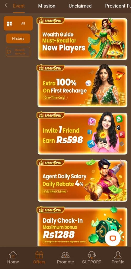 Earning in SHAH SPIN Game APP works in multiple ways: